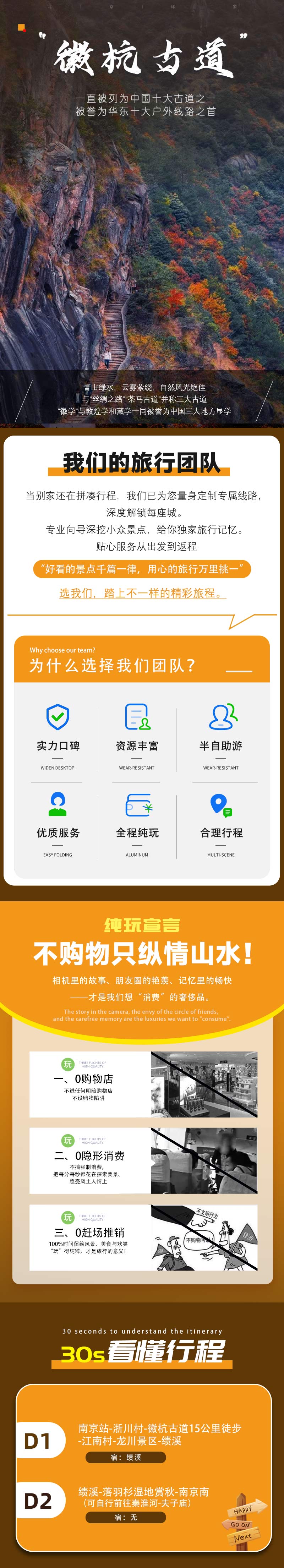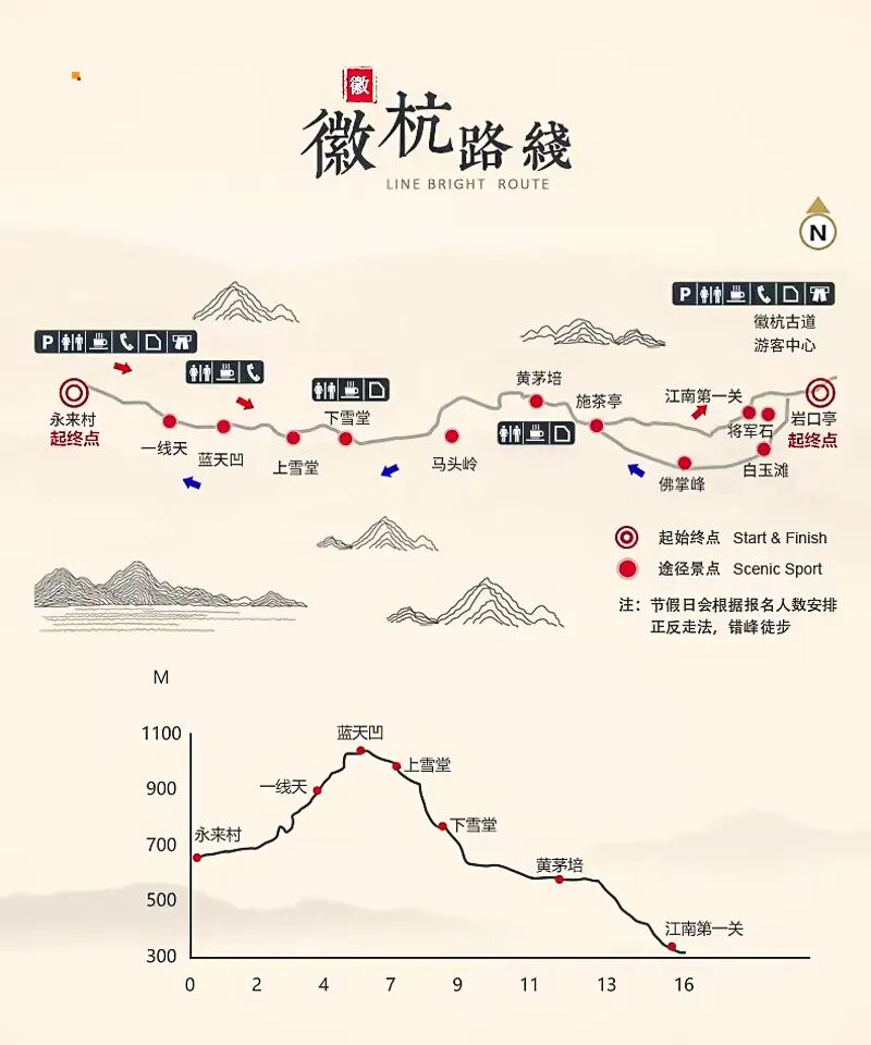 - 请按集合信息准时集合,之后我们乘车前往【徽杭古道】杭州段徒步起点,全程徒步约15公里(耗时约6-7小时)。