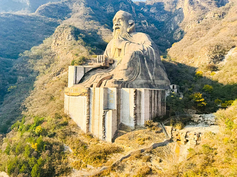 老子塑像。圣莲山始建于唐代,盛于晚清,建庙宇于峭畔,佛道合一,演绎出独特的文化特色。