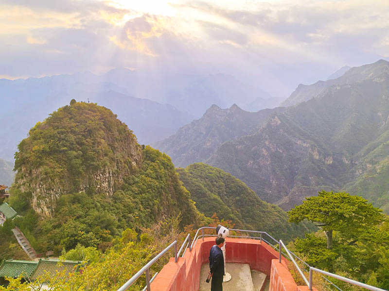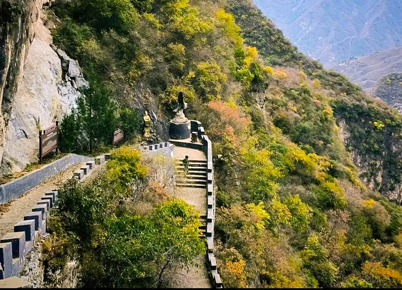 圣莲山景区很大,国家4A级景区,"道家风骨佛光照,奇峰峻石圣水灵”,这是圣莲山的真实写照。正午时分,阳光一览无余地照耀在陡峭的岩壁台阶上。