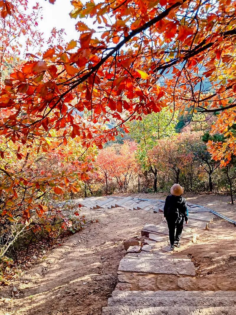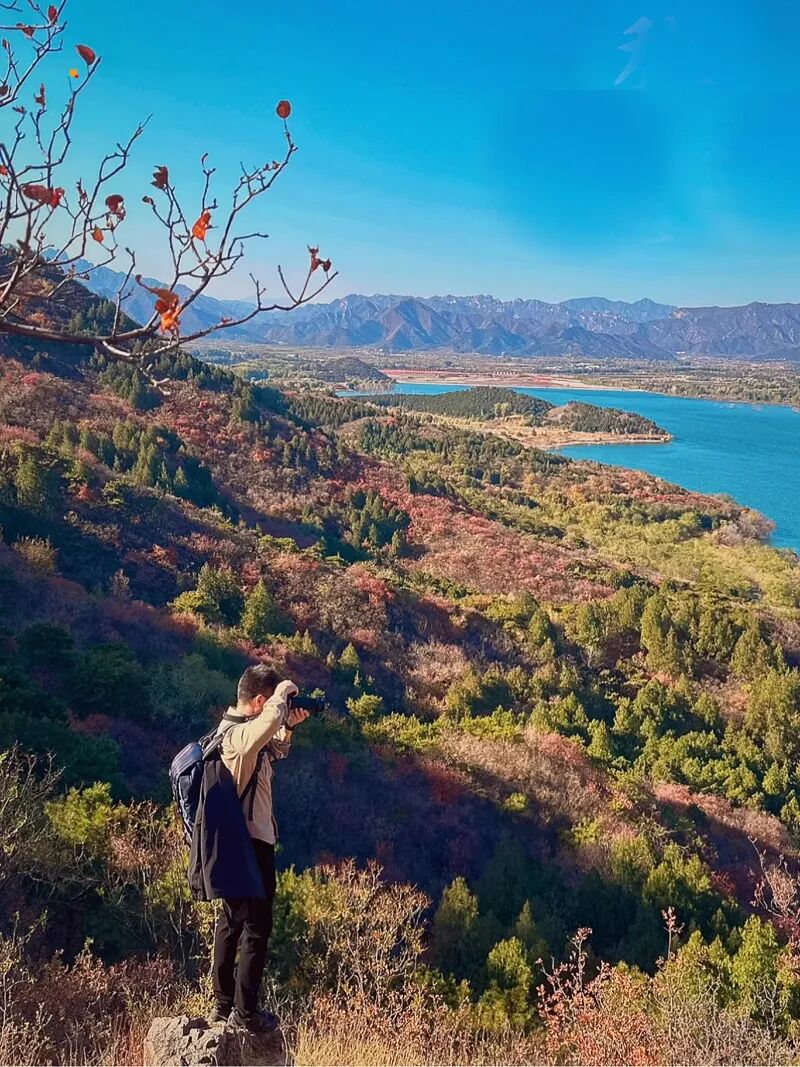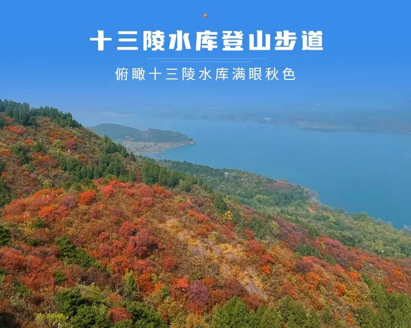 - 09:30|到达『十三陵登山步道』,大家在领队的带领下徒步栈道赏景。这里的红叶观景步道全都修在山脊上,让人一边沿着步道游览,一边歇脚俯瞰十三陵水库,满眼都是层林尽染的金秋美景,人在红叶中,红叶裹挟着人,拿出手机,随手一拍,都是美图!